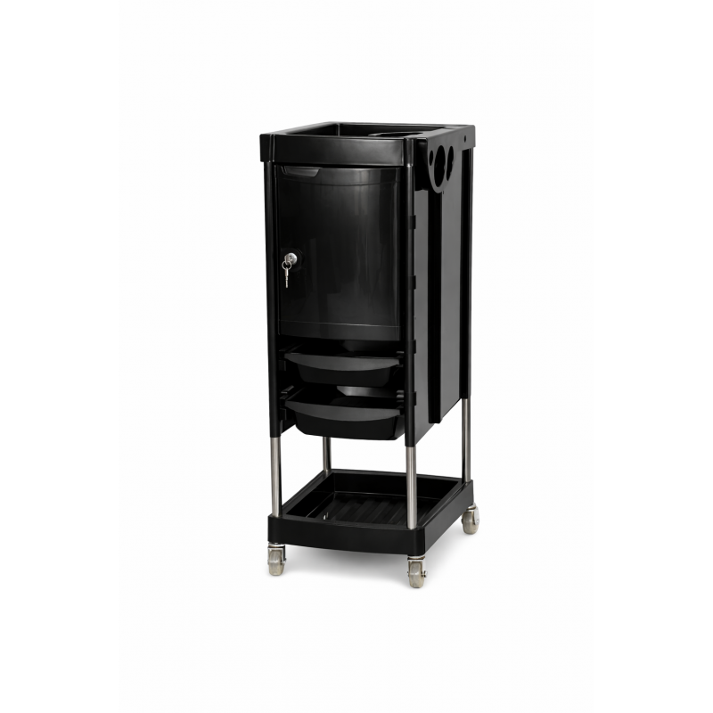 Il dispose de bacs de rangement intégrés pour les produits et accessoires, ainsi que d’un compartiment fermé à clé, idéal pour sécuriser le matériel, les produits coûteux ou personnels.