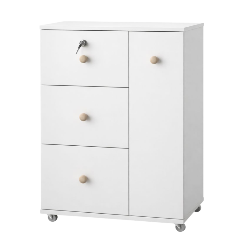 Guéridon en bois 3 tiroirs Blanc avec clé