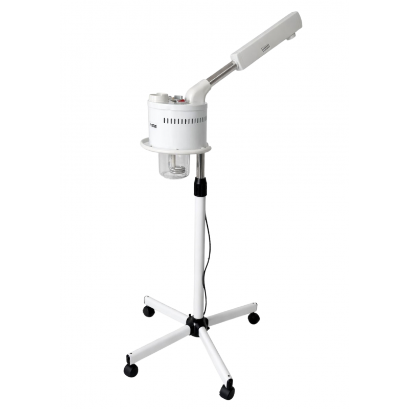 Vapozone esthétique professionnel sur pied, conçu pour les soins du visage et le nettoyage en profondeur de la peau. Équipé d’un bras orientable pour une diffusion précise de la vapeur, d’un réservoir transparent et d’une structure stable à roulettes facilitant le déplacement. Indispensable pour les instituts de beauté, spas et cabinets esthétiques.