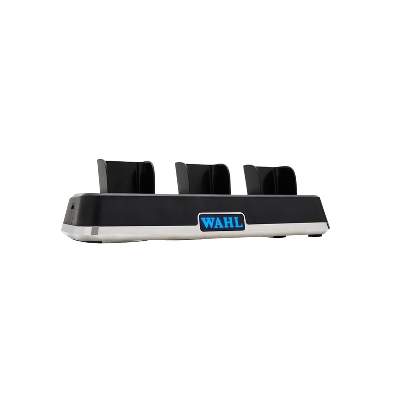 La Power Station Wahl vous permet de recharger simultanément une combinaison de trois tondeuses, coupe-bordures ou rasoirs professionnels sans fil 5V Wahl.